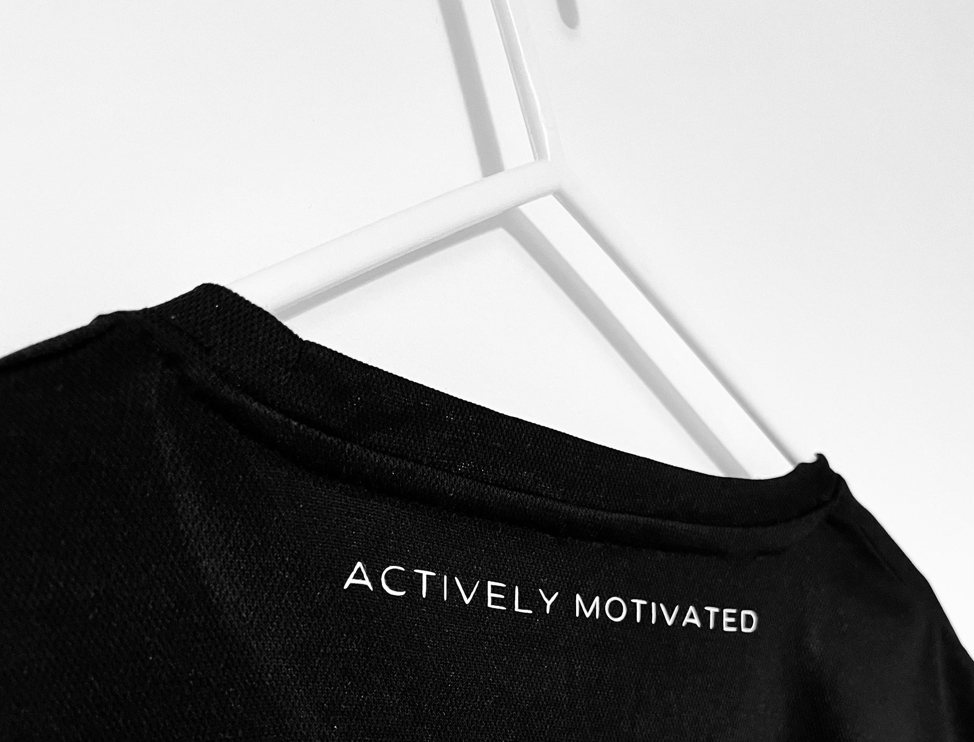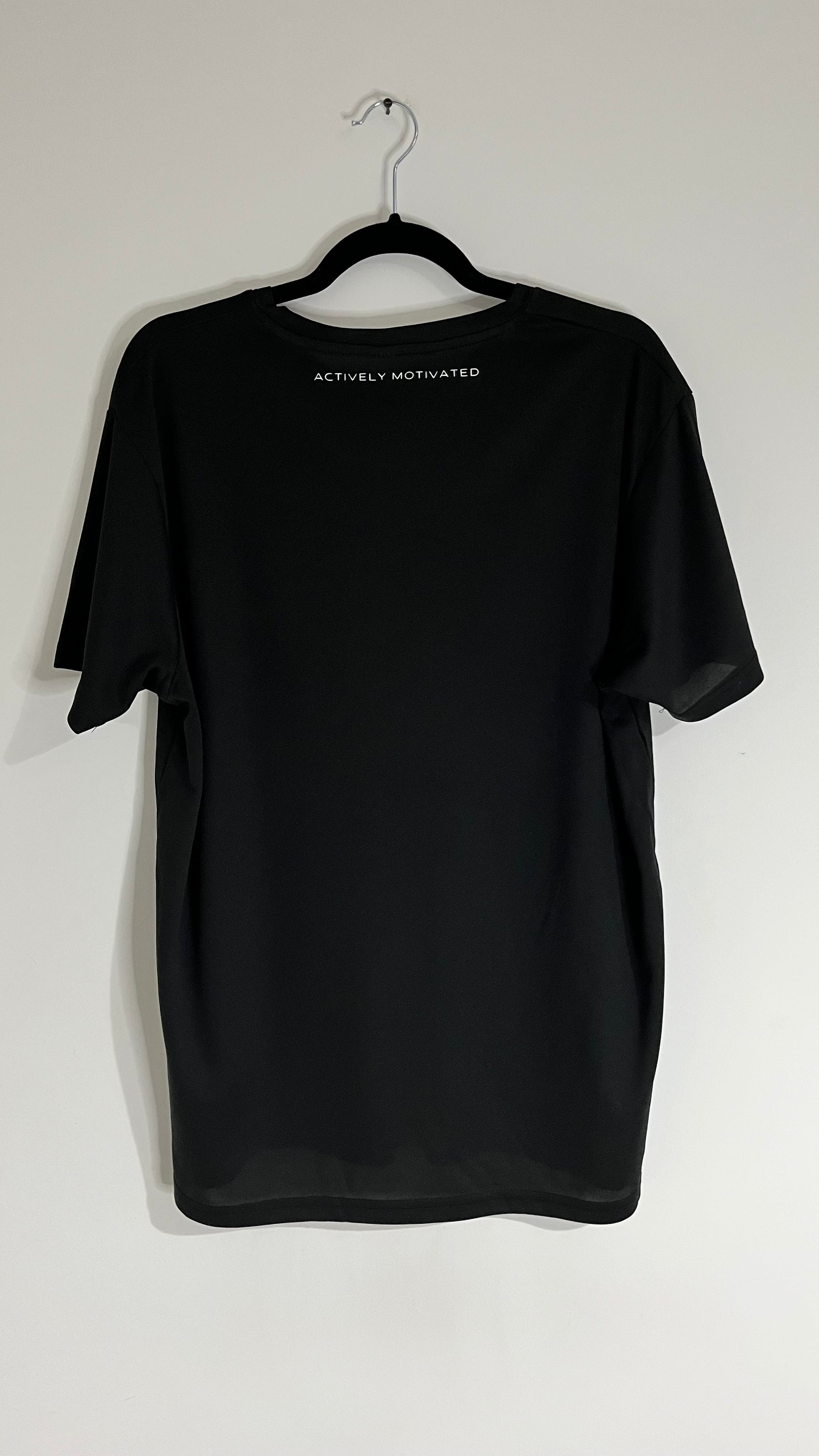 Our AM active T in black with the original AM logo design. Great for them intense workouts and long distance runs.